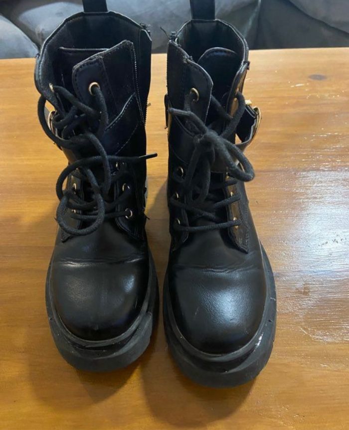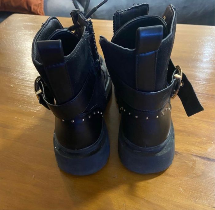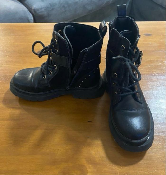 Paire de bottines de couleurs noire pour fille de la marque Lovely Skull en très bon état, taille 33. Elles ont été peu portée, elles sont à lacets avec une fermeture éclair sur le côté et avec une languette sur l’avant. Vendu sans la boîte d’origine
