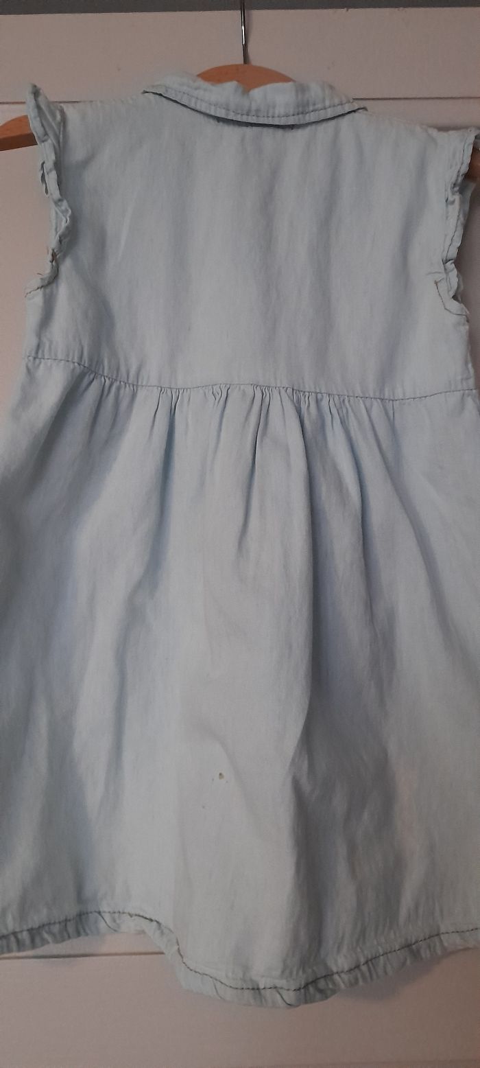 robe en jean d'été légère 23 mois, état satisfaisant car a des taches blanches et 1 tache à l'arriere. "Allez voir mon dressing reduction sur les lots"