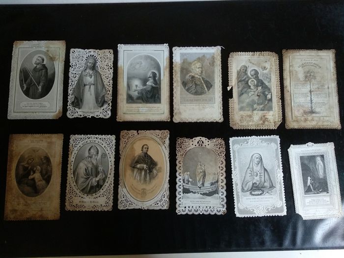 12 anciennes images pieuses dentelle