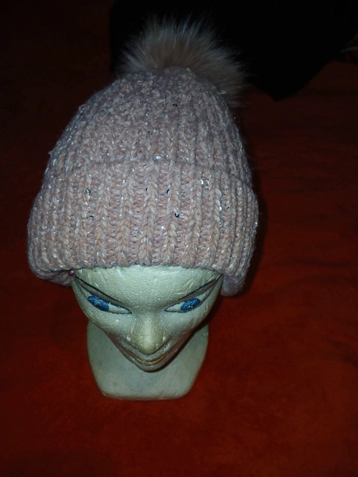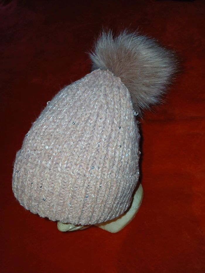 Bon’et rose pâle avec pompon rose pâle assorti - photo numéro 3