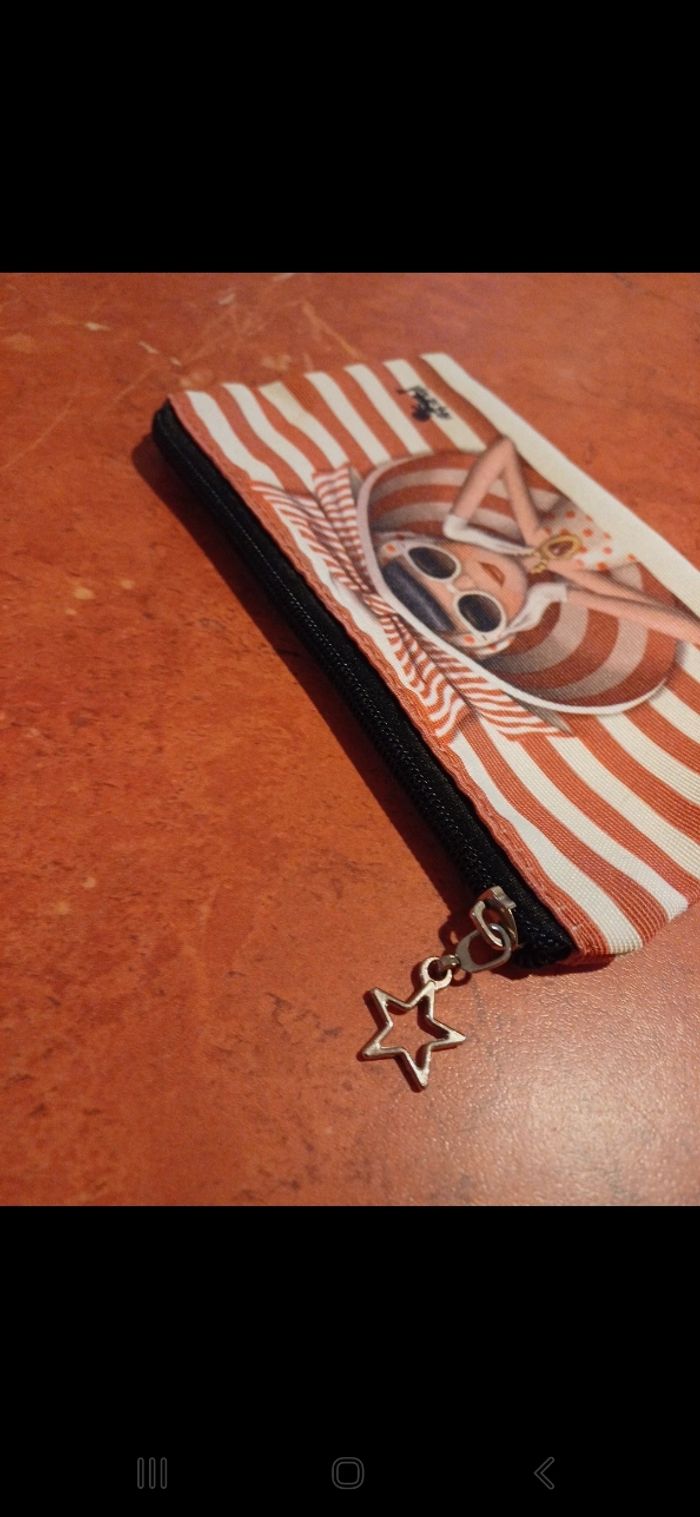 Petite pochette zippée. Dimensions : 20 / 13 cm. Malheureusement petite tache de vernis à l intérieur.