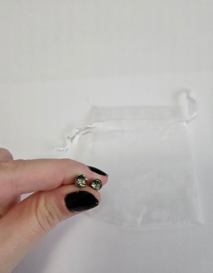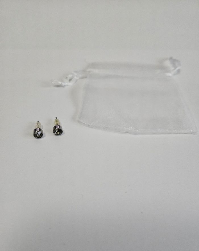 Boucles d'oreilles strass gris foncé Très bon état Sans marque Vendu en l'état Avec pochette Couleur argenté et gris Envoi soigné