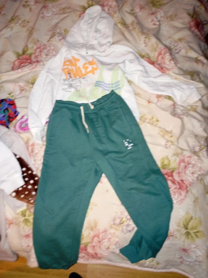 Bas jogging Zara vert et sweat skateur blanc graff Kiabi