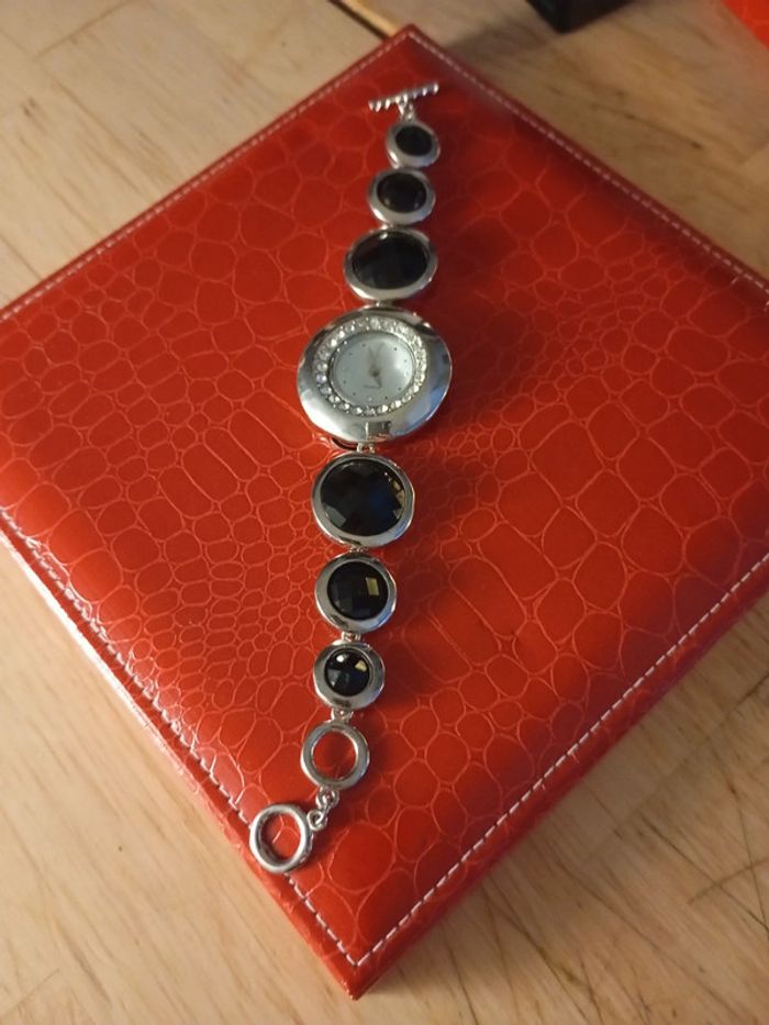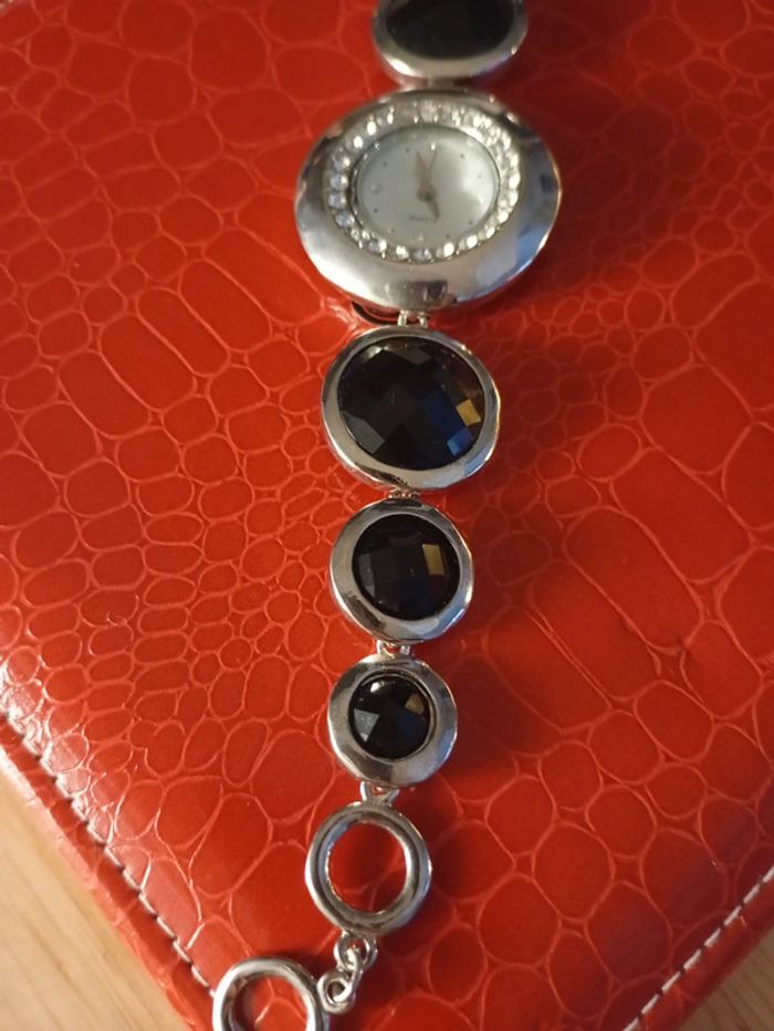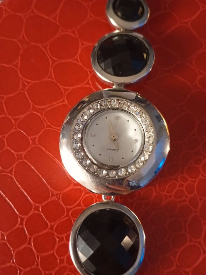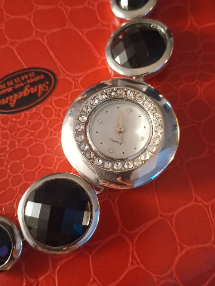 Superbe montre argent et strass noirs - photo numéro 2