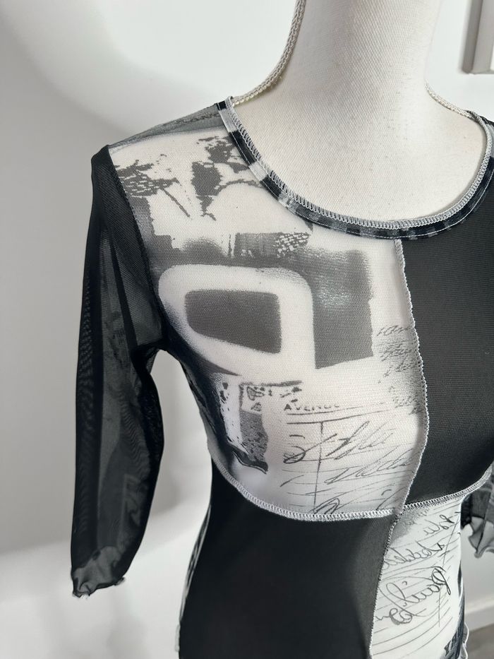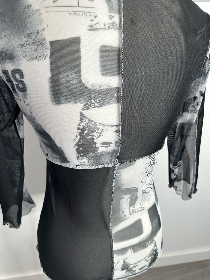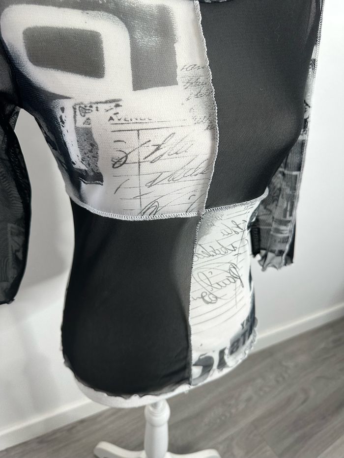 Top en mesh damier noir et blanc Y2K T38 M - photo numéro 6