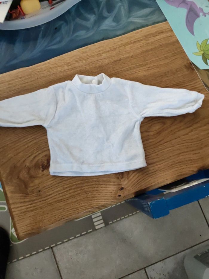 Haut matière pyjama très chaud idéal avec une robe en jean Bon état Pas d'un blanc éclatant mais bon état #bebe3mois
