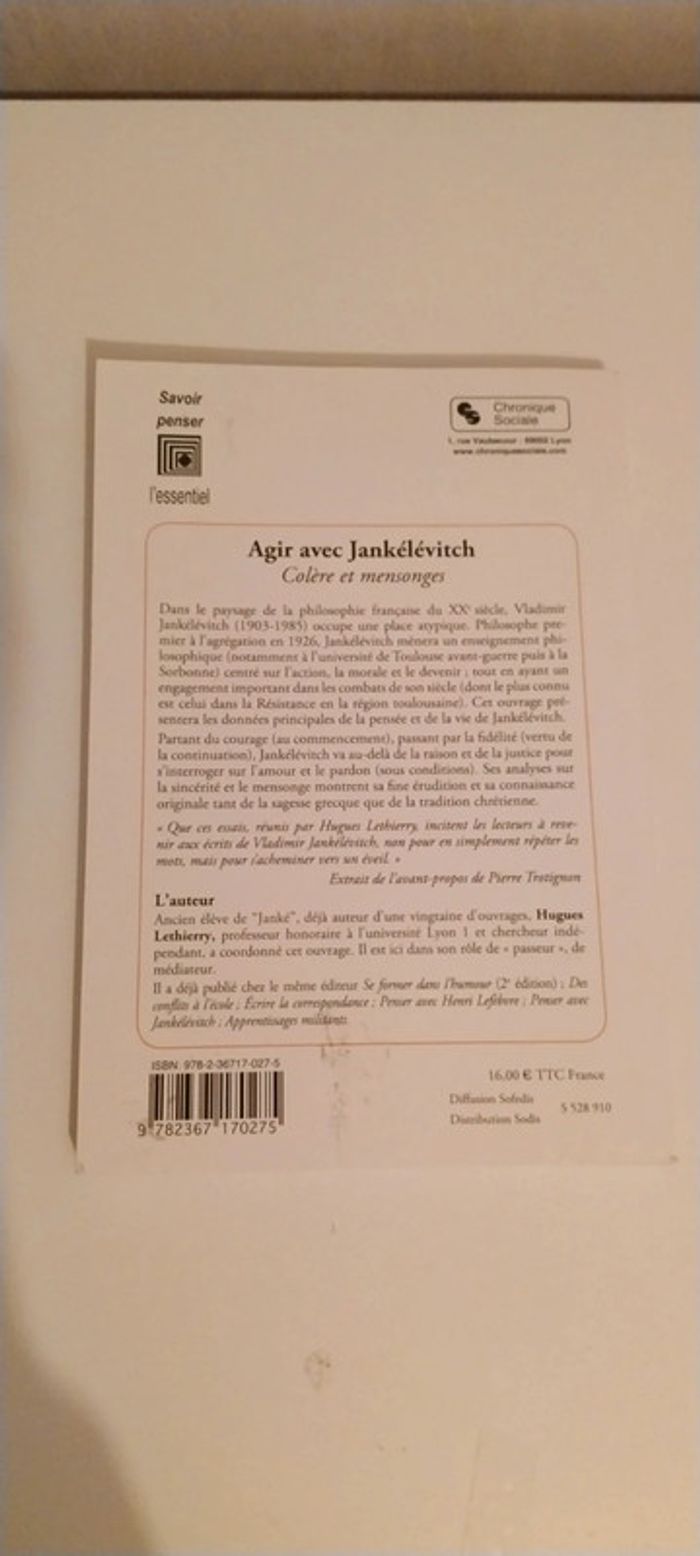 Agir Avec Jankélévitch - Colère Et Mensonges - photo numéro 2