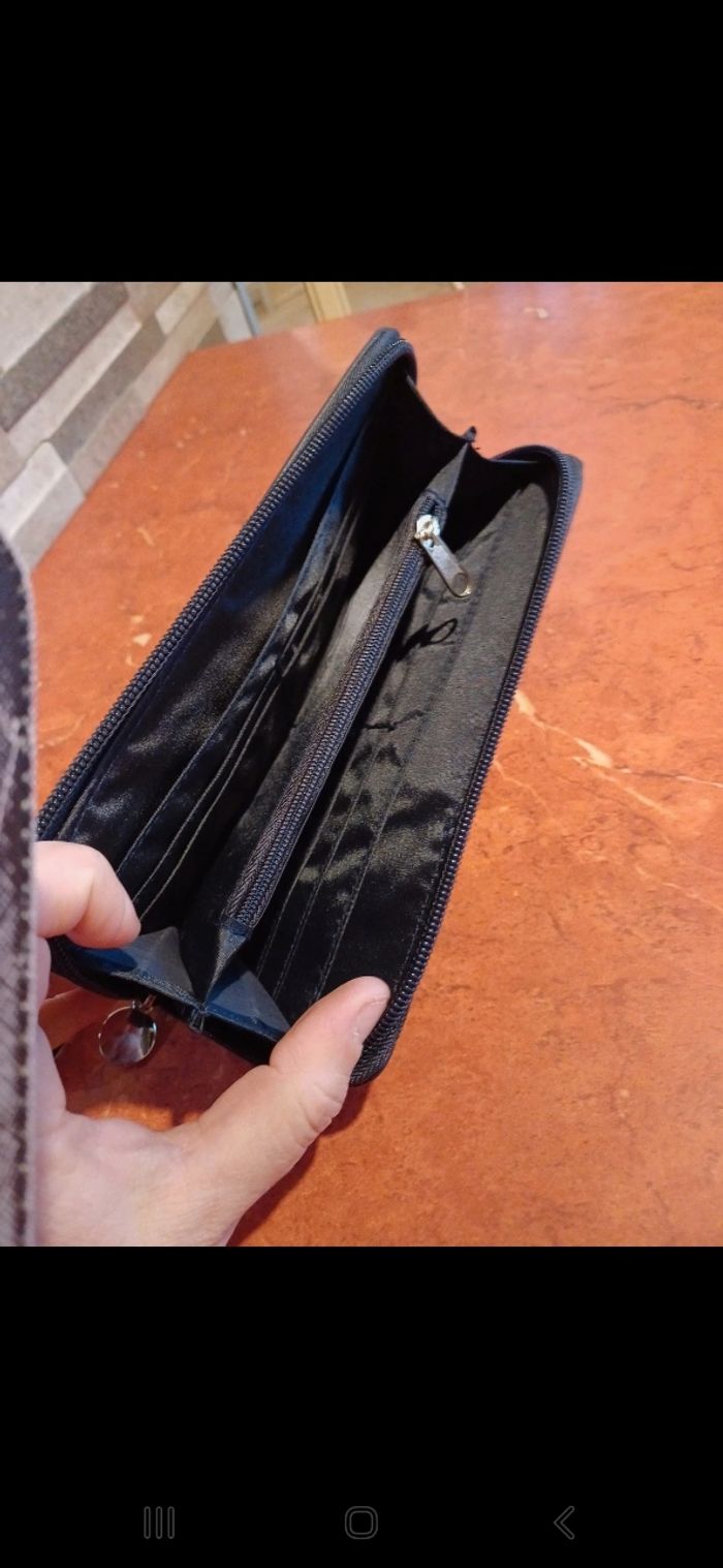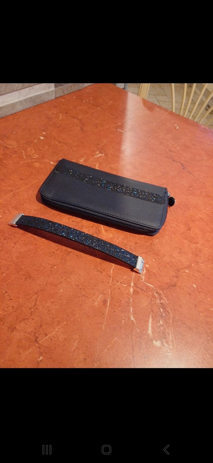 Porte feuille avec une pochette au centre, 2 compartiments et nombreux emplacements pour les cartes. Zippé toit le.tour . Vendu avec un bracelet assorti