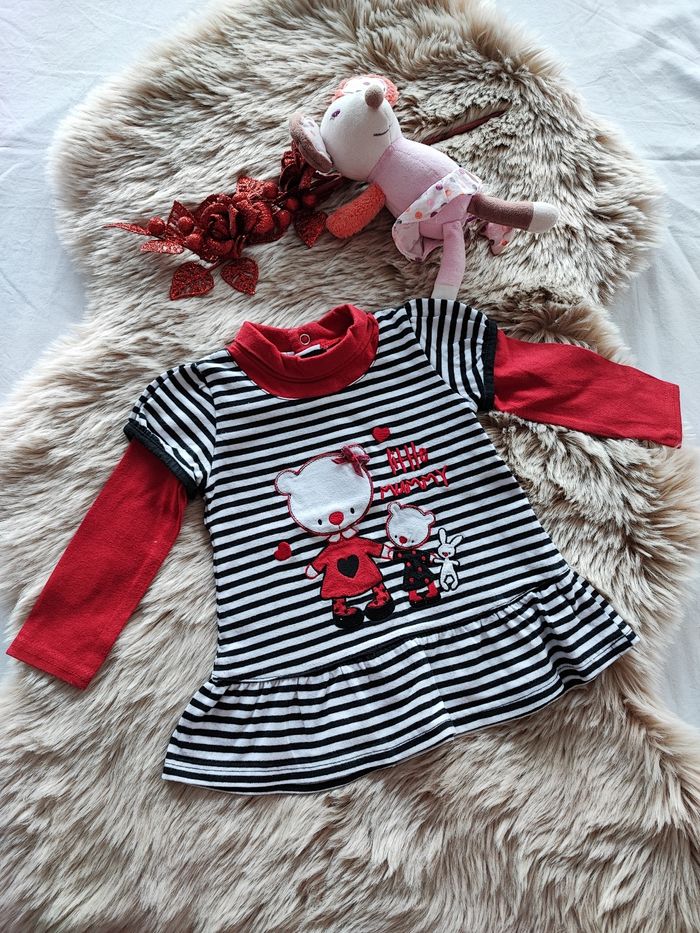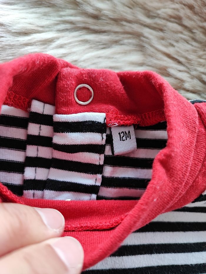 Tunique noir, blanche rayé et rouge 61% coton et 39% polyester En taille 12 mois En très bon état / maison non-fumeur #laetitia33700filledouzemois