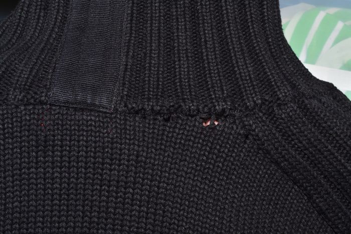 maille légèrement ajourée bon état voir photos des défauts surtout au niveau du derrière du col épaule à épaule 48 cm aisselle à aisselle 49 cm au niveau des hanches 44 cm longueur 69 cm longueur des manches 66 cm
