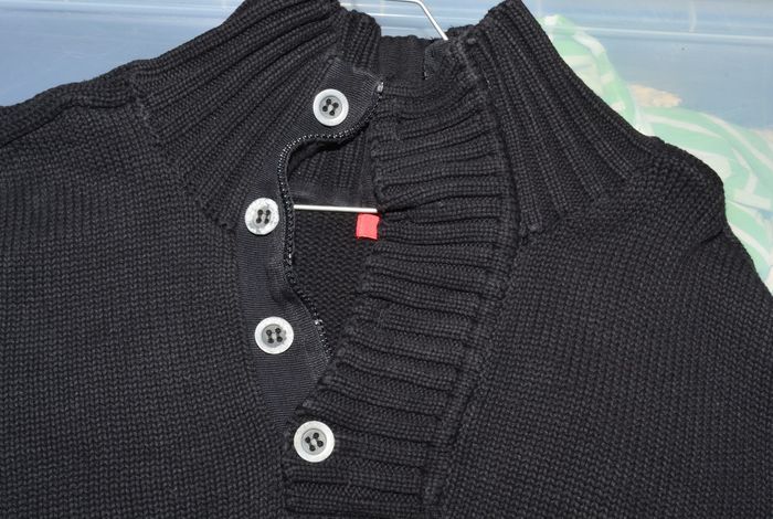 Pull d'hiver homme en coton noir uni taille L col V - photo numéro 2