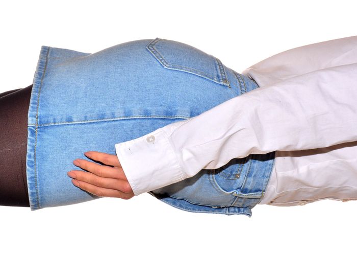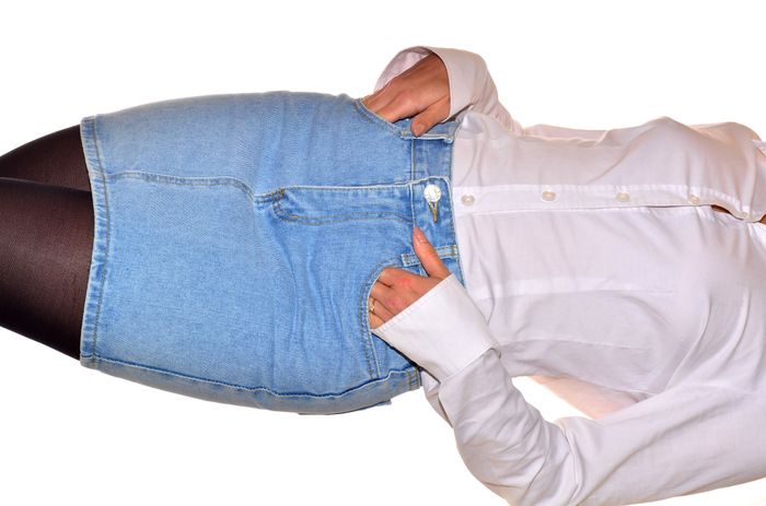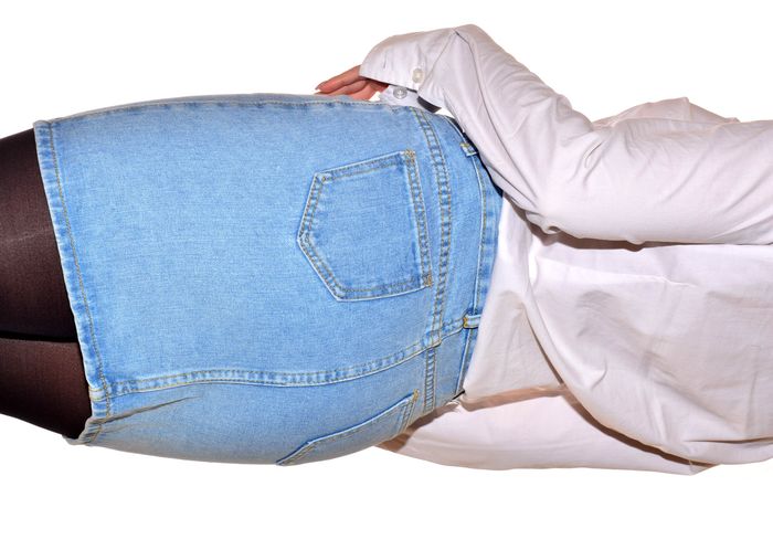 mini jupe en jean bleu clair uni taille S - photo numéro 4