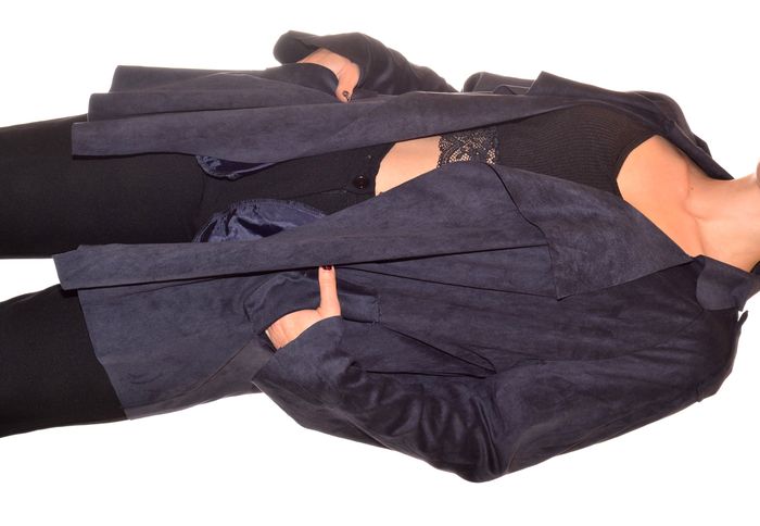 Long gilet ouvert fluide daim bleu/gris uni taille 34/36 mango manches longues - photo numéro 4