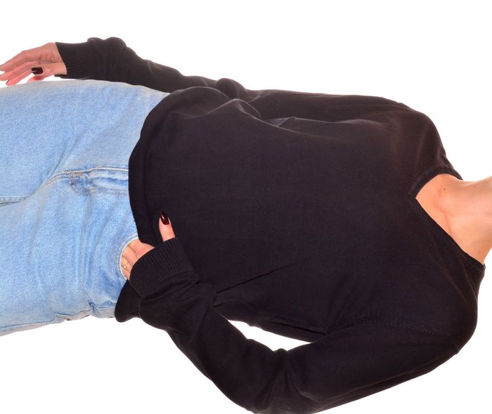Pull homme noir uni Brice col V manches longues taille L en coton - photo numéro 4