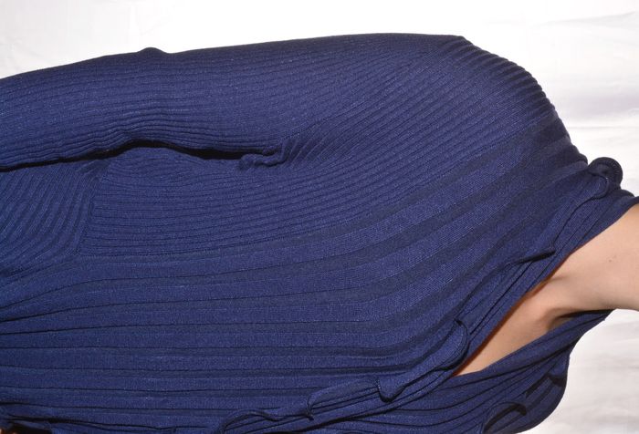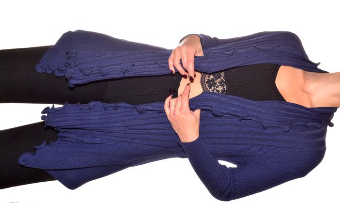 Long gilet ouvert bleu marine uni manches longues ajusté asymétrique taille S/M - photo numéro 4
