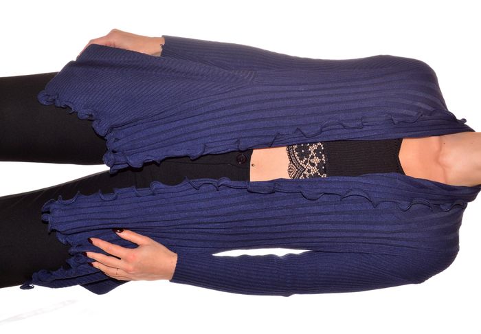 Long gilet ouvert bleu marine uni manches longues ajusté asymétrique taille S/M - photo numéro 5