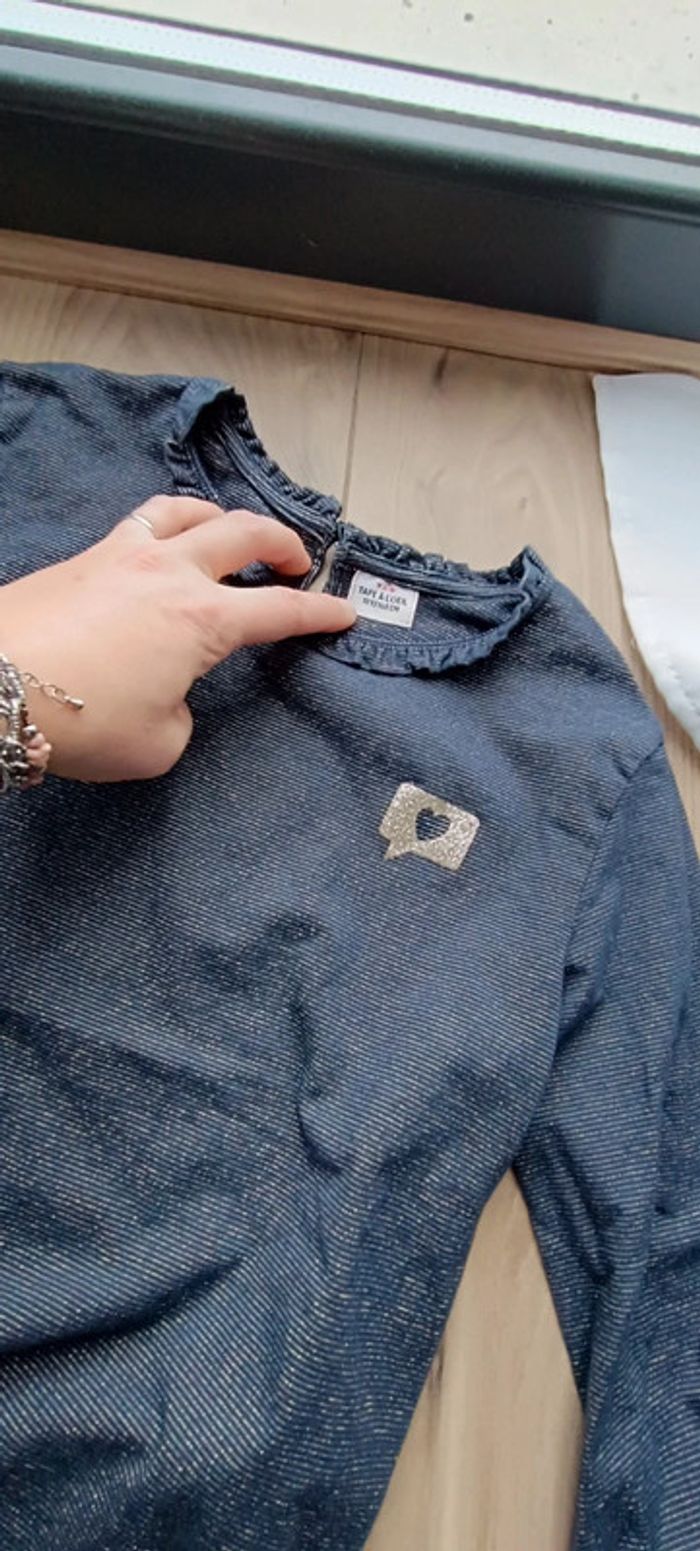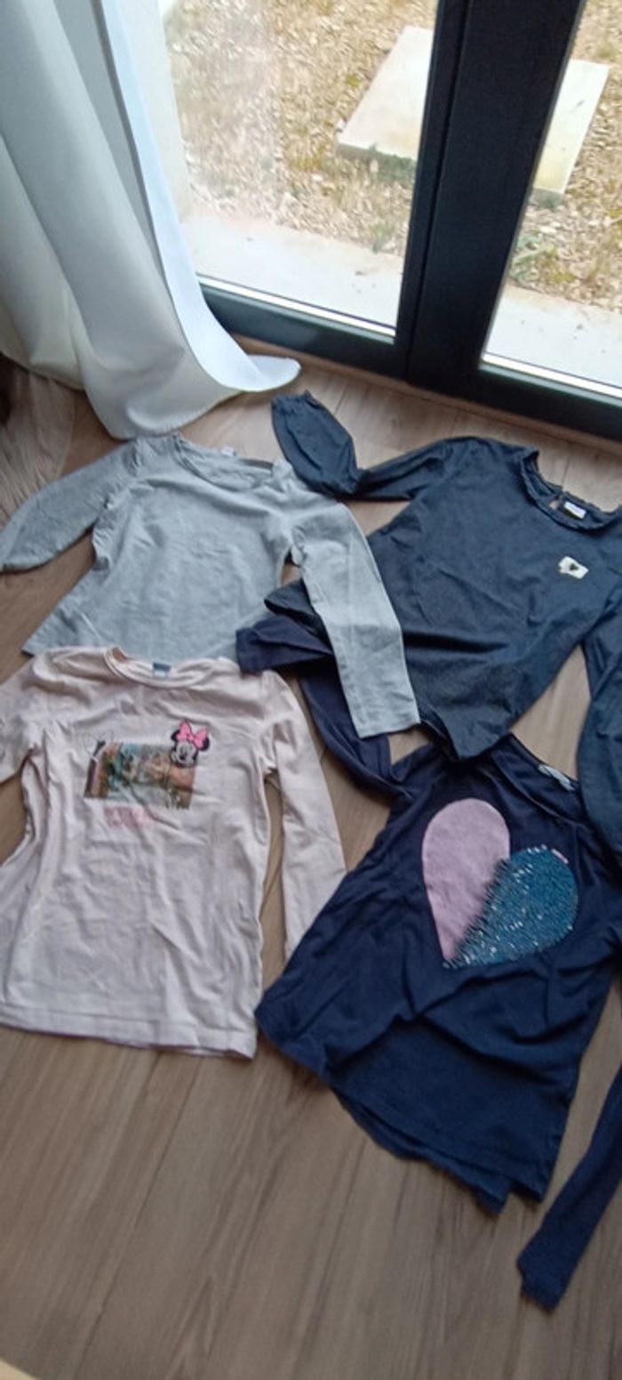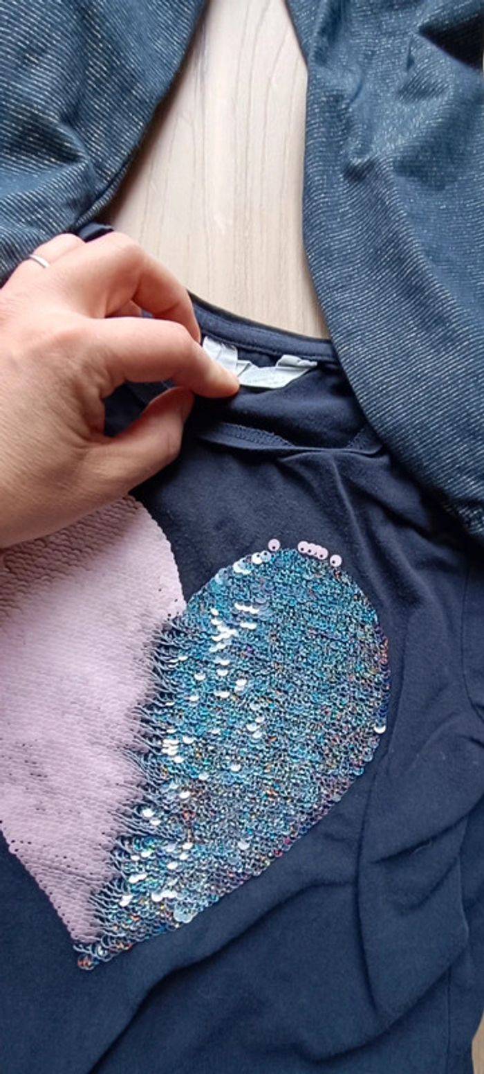 Lot 4 t-shirt manches longues 10 ans Bleu avc rayures dorées tape a l'oeil/ gris rayures argentées la halle/ rose Disney Minnie / bleu sequins réversibles Okaïdi #lola10ans