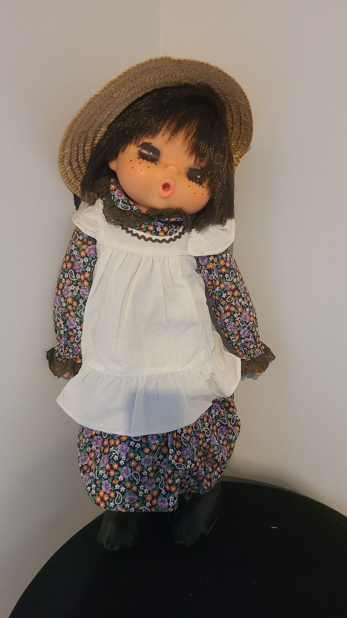 Jolie poupée Seki Guchi japonaise vintage des années 70. Corps souple en tissu, tête en plastique.
