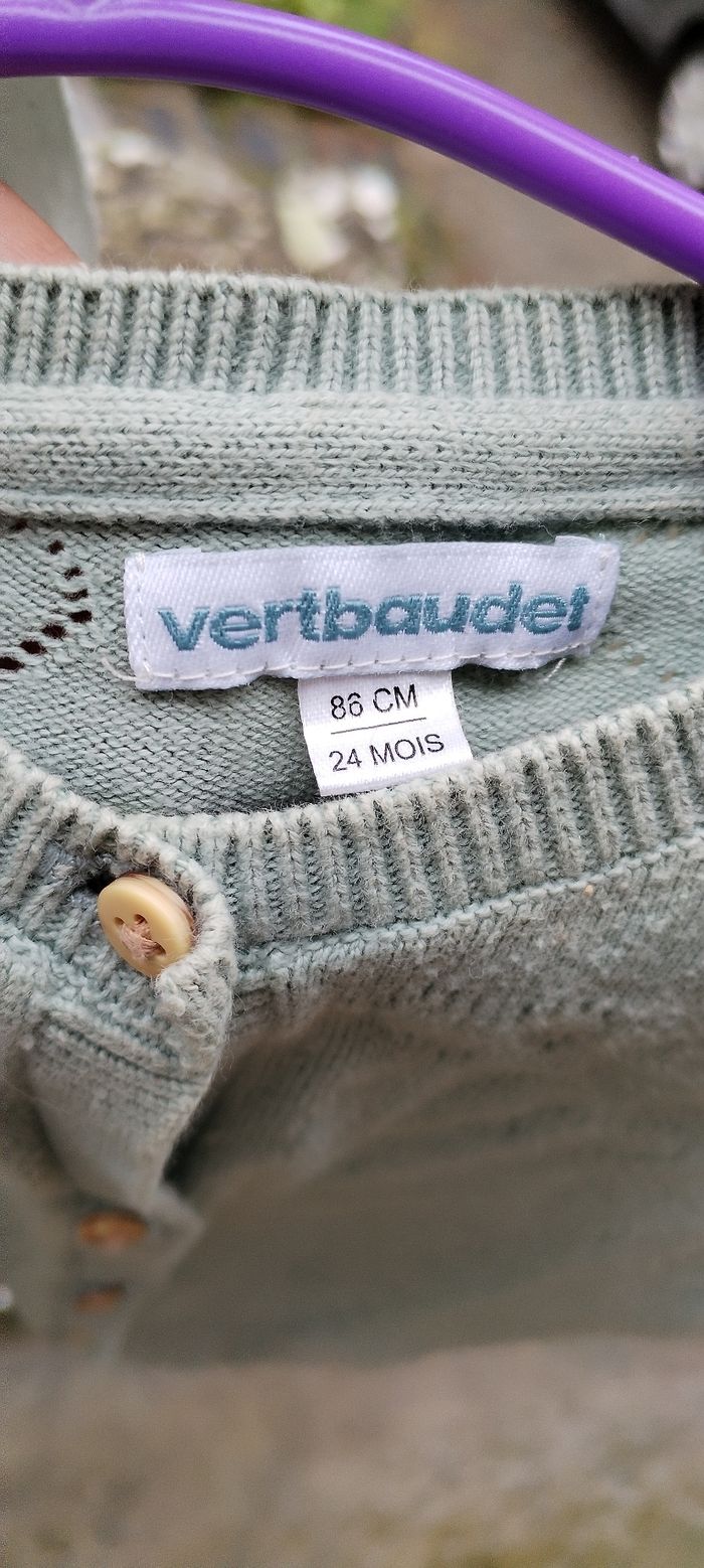 Gilet vert amande pour fille. Marque Verbaudet. Taille 2 ans. Comme neuf. Que mondial relais ou Relais Colis.