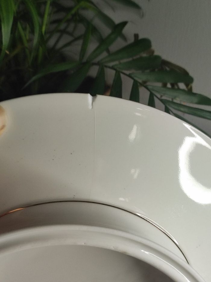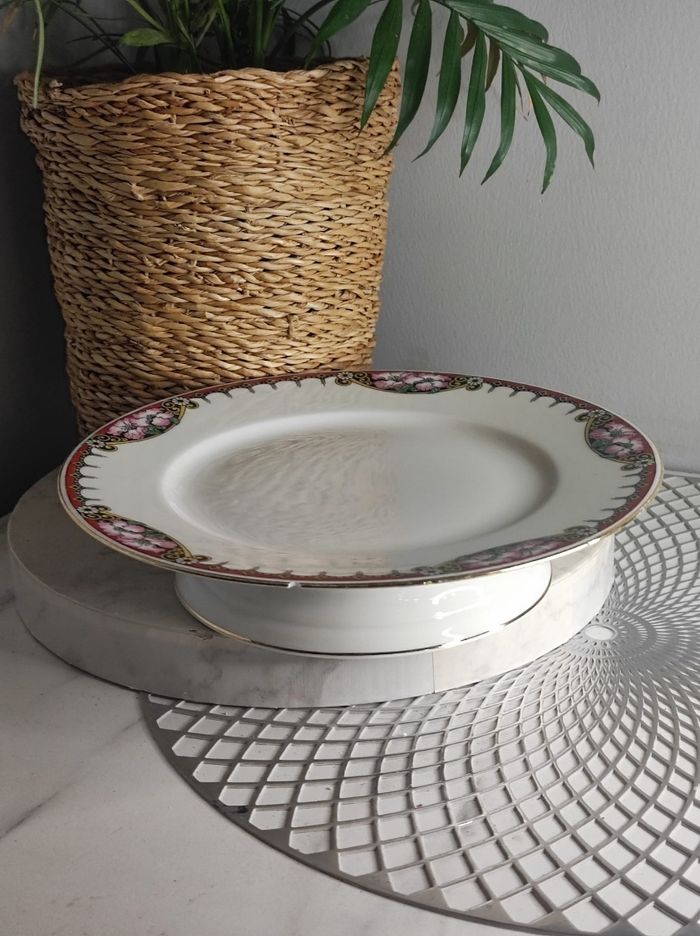 Plat a gâteaux en porcelaine de limoges. Ébréchée/fissuré sur le bord, ke reste est en bon état. D23,5x H5