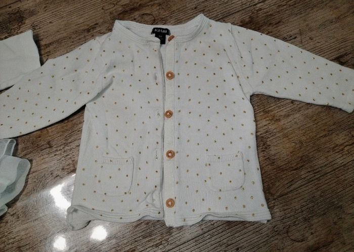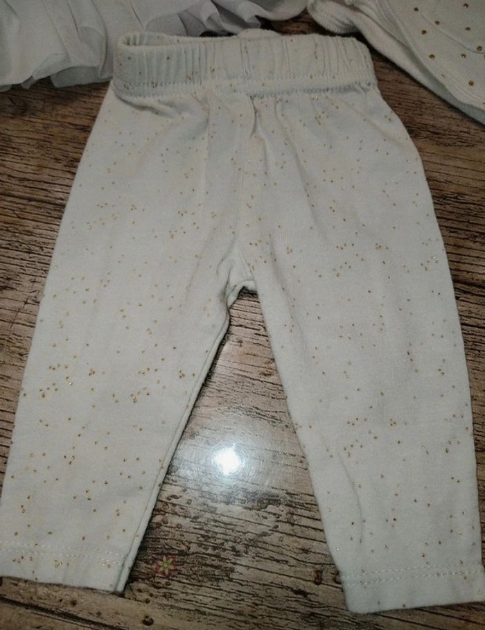 Joli ensemble fille 3 pièces (haut avec tulle, legging et son gilet a pois en paillettes dorées) Taille 3 mois Très bon état Envoie rapide et soigné D'autres vêtements taille 1, 3, 6, 9, 12 mois à suivre dans mon dressing 🥰 N'hésitez pas à vous abonner pour en être alerté Réductions activées 😊 N'hésitez pas à faire des lot #titenainedu62fille3mois