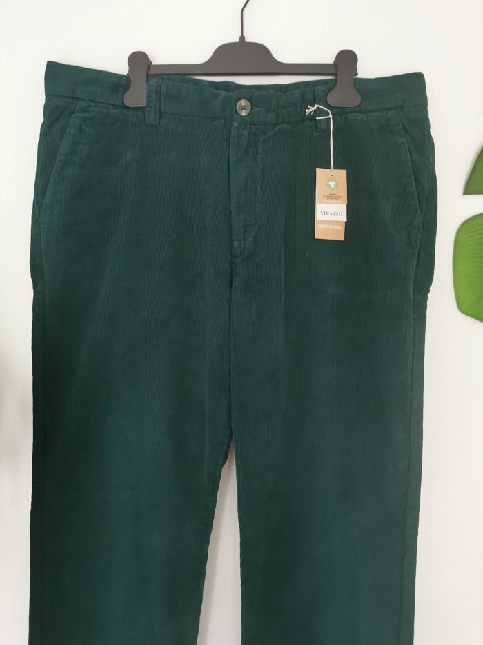 🧔 ÉTAT DE L'ARTICLE: 10/10 ✅️ Avec étiquette 🔖, jamais porté Pantalon velours 🧔 Monoprix Taille 48 • Matière: 100% coton biologique • Tissu Velours côtelé • Coupe Straight • Fermeture zippée ➕ 2 boutons 🔘🔘 • 2 poches avant • 2 poches arrières fermées par bouton 🔘 • Passants pour ceinture • Couleur: Vert foncé / Vert sapin 🌲 • 📏 Longueur: 110 cm • 📏 Mesure taille à plat: 48 cm étirable 💰Prix boutique: 45.99€ Parfait état 👌, avec étiquette🏷️, jamais porté 🟠🟠