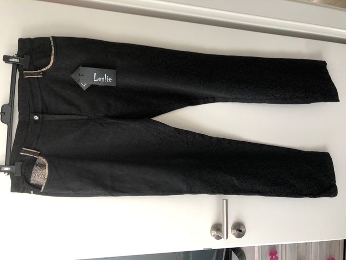 Magnifique pantalon femme avec formes sur tout le pantalon. Legèrement stretch Marque Leslie Taille 46 Taille: environ 46cm