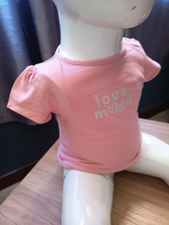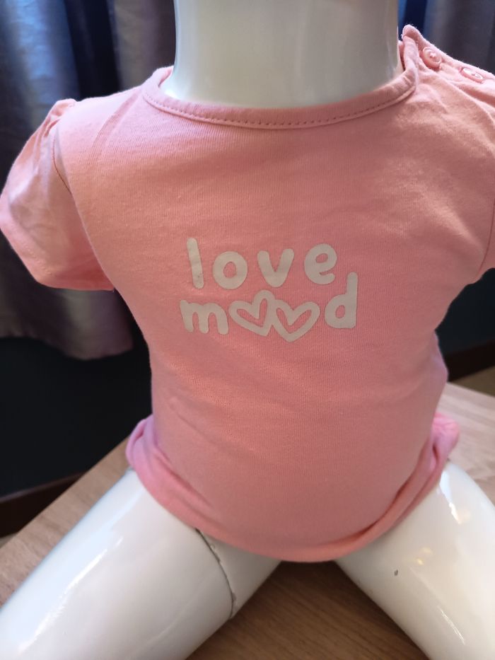 Tee shirt court rose pâle et blanc