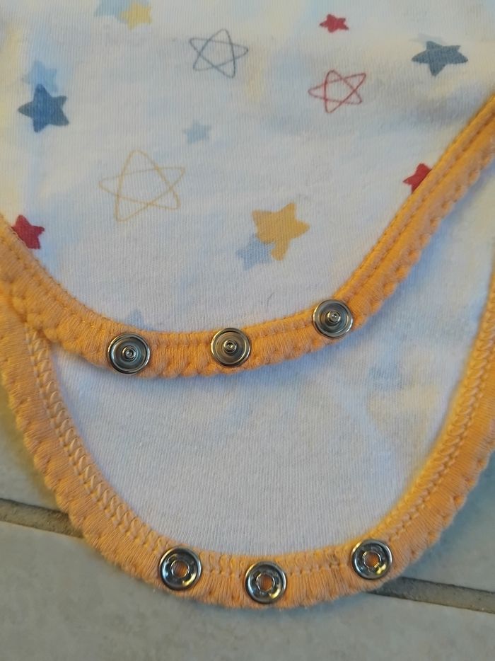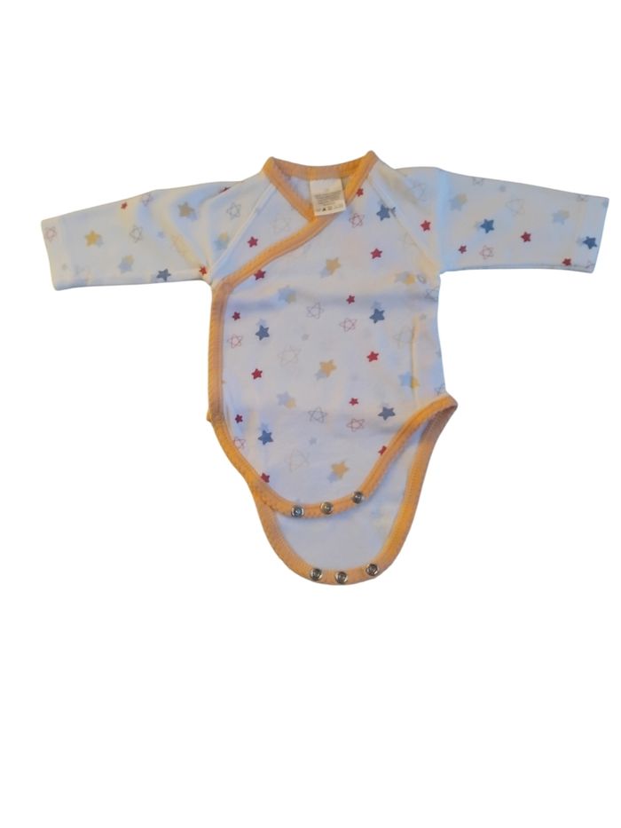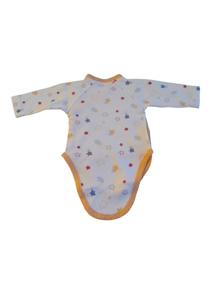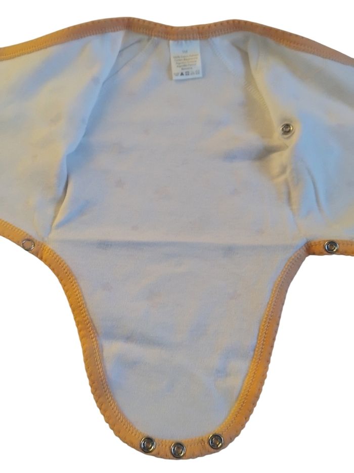 Body de couleur blanc avec motif étoile. Liseret orange. #bébéfille1moisnade3033
