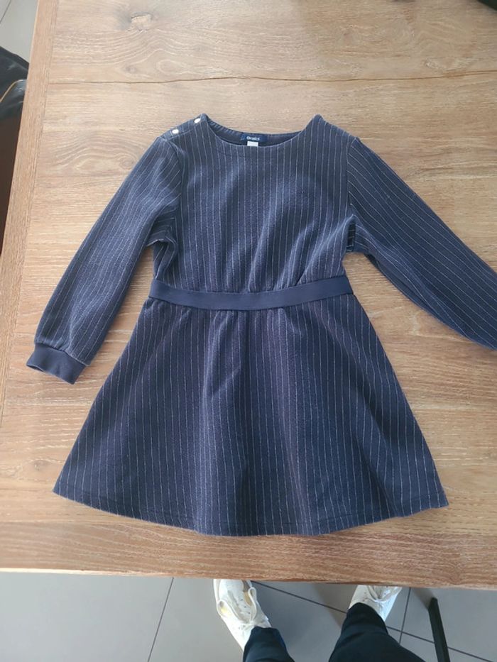 Très belle robe hiver peu portée Bleu marine à fines rayures blanches Taille elastiquee Achetée neuve. Pas daccrocs ni taches Envoi rapide et soigné