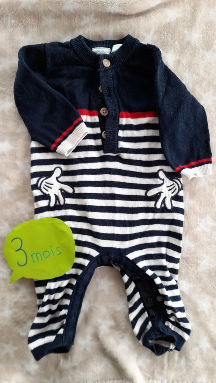 Combinaison Mickey, dessins devant et derrière, ouverture entre les jambes par pressions