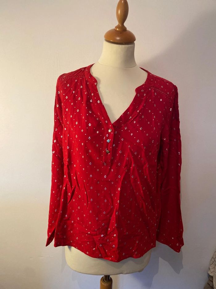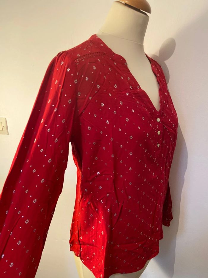 ➡️ Je vends une blouse manches courtes femme taille M de la marque Cache-cache ℹ️ De couleur rouge avec motifs ♻️ Matière : 100% Viscose 💫 Très bon état 📤 Envoi rapide, via mondial relay, shop2shop, colissimo, relais colis 📦 N’hésitez pas à faire un lot #romainp22112002femmem #blouse #blousefemme #blousemanchescourtes #blousecachecache #blouseM #femme #cachecache