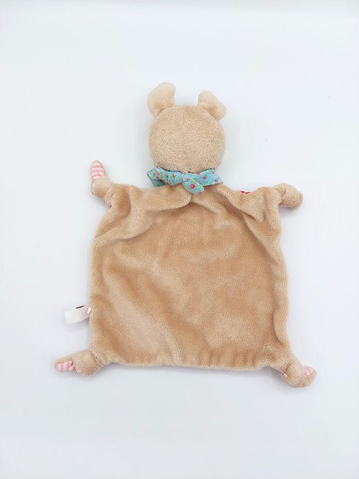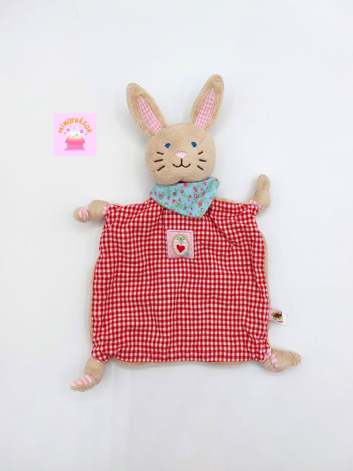 Doudou plat lapin beige vichy rouge et rose aux oreilles grelot bandana fleurs coccinelle cœur Die Spiegelburg Babyglück Très bon état, l'étiquette de lavage est effacée Envoi rapide A11641 #minotresor #peluche #doudou #plush #knuffel #comforter #babygluck #babygluck