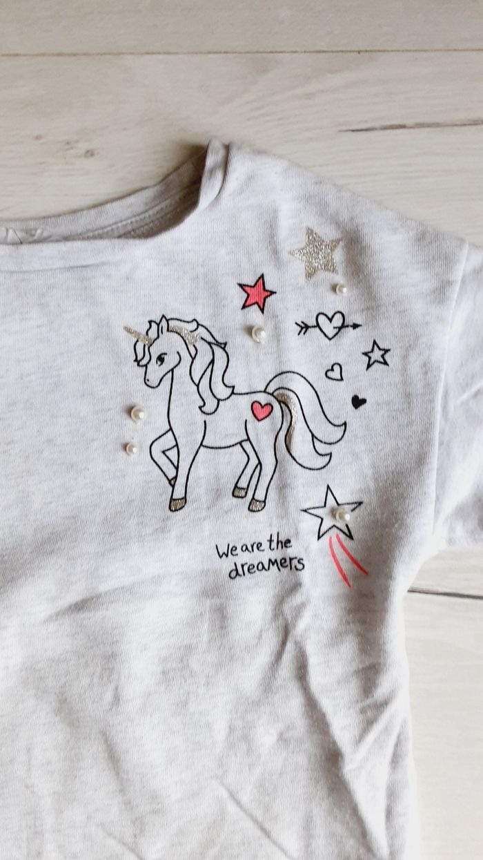 Vêtement fille pull motif licorne  et perles blanches H&M 10 ans