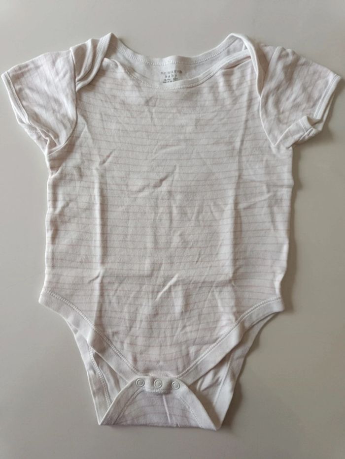 Manches courtes. Large. Rayures lignes fines roses claires. Article sans trou ni tâche. Taille : 18-24 mois / 92 cm. #melody45340bebe24mois