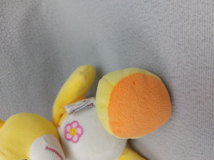 Peluche doudou girafe jaune JEUX2MÔMES orange fleur papillon rose billes Très bon état, petite réparation de côté, petit trou de l'attache plastique de vente sur la patte (photo 3,4) Envoi soigné et rapide A11144 #minotresor #peluche #doudou #plush #knuffel #comforter