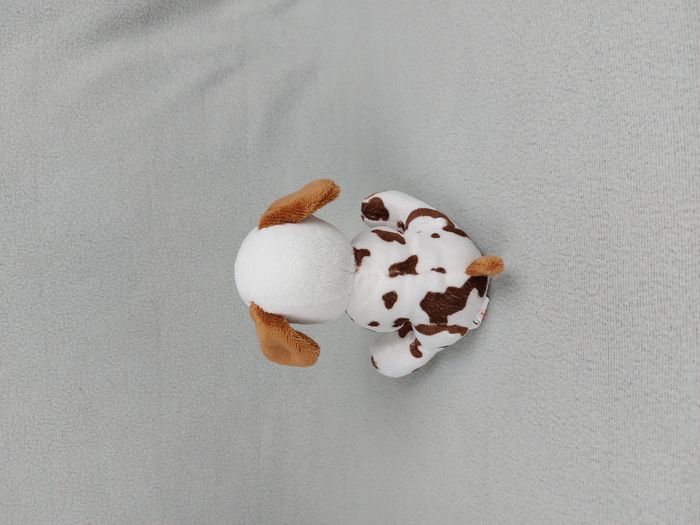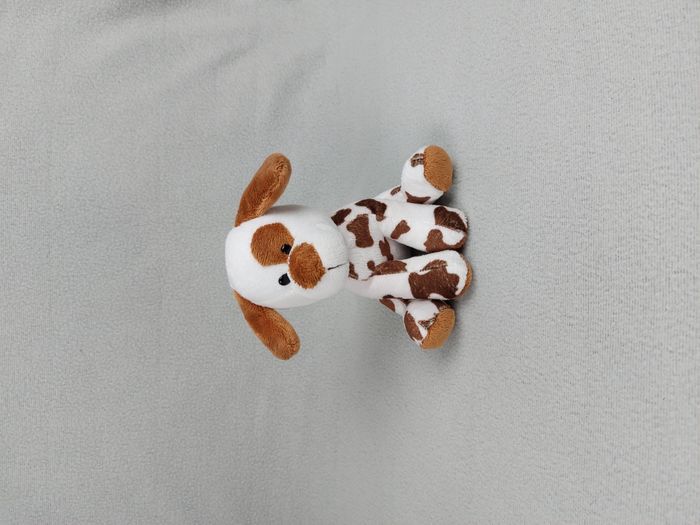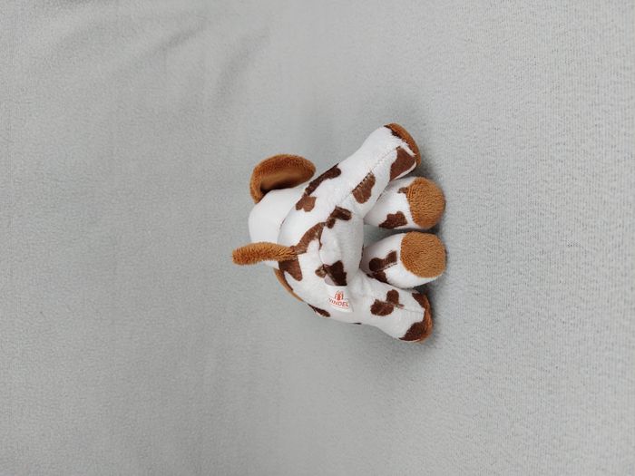 Petite Peluche doudou chien blanc tâches marron WINDEL 16 cm cocard Très bon état, le blanc est un peu rosé sur le corps Envoi soigné et rapide Réf A11140 #minotresor #peluche #doudou #plush #knuffel #comforter