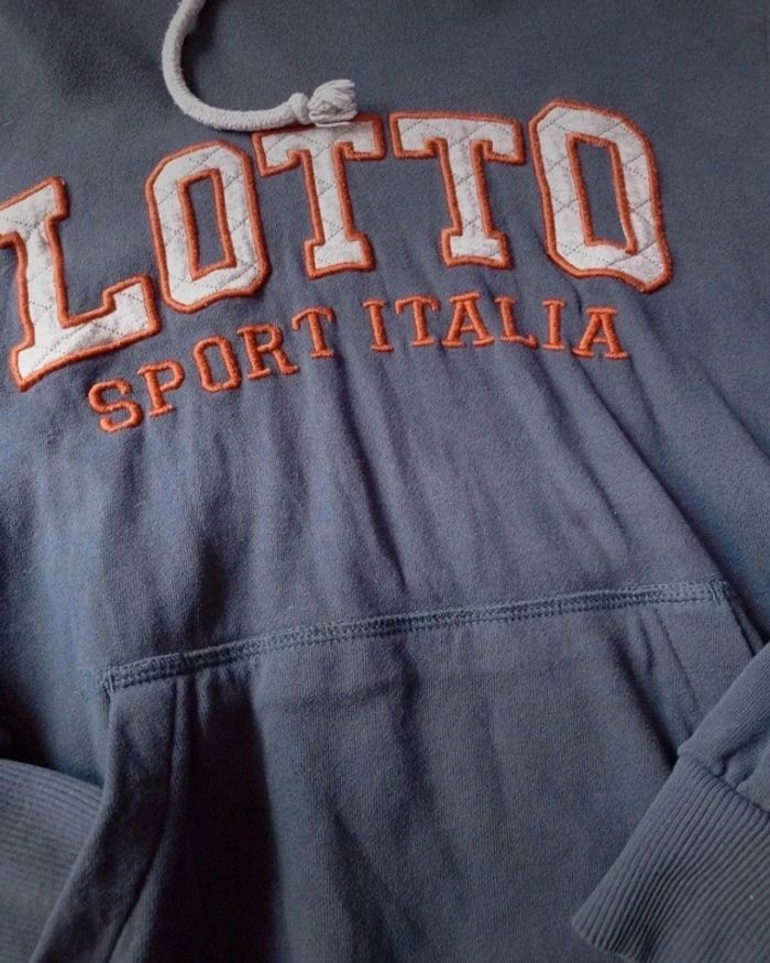 Sweat Lotto Bleu marine intérieur capuche gris Poche kangourou Étiquette taille M Fin années 90 #vintage #sweatacapuche