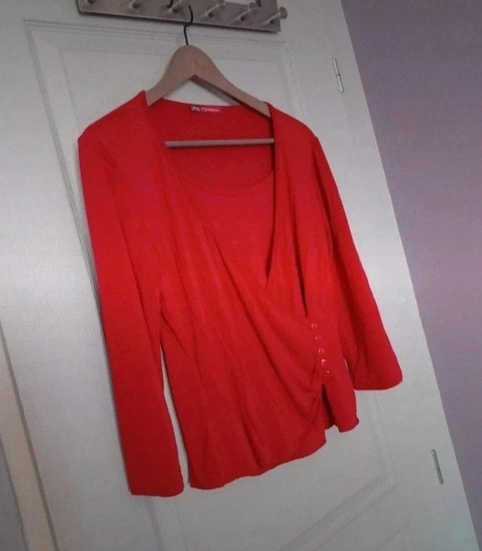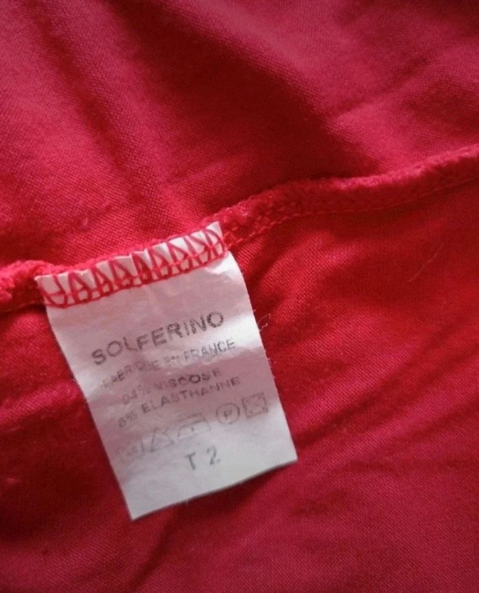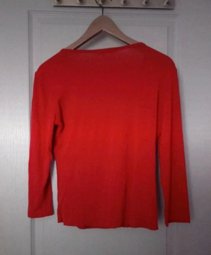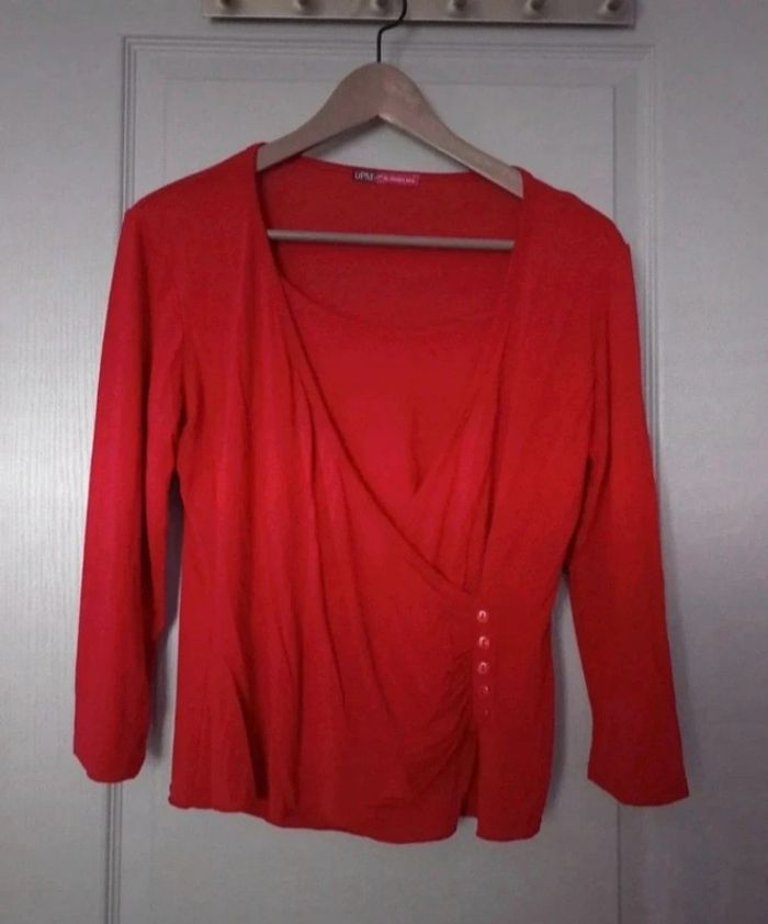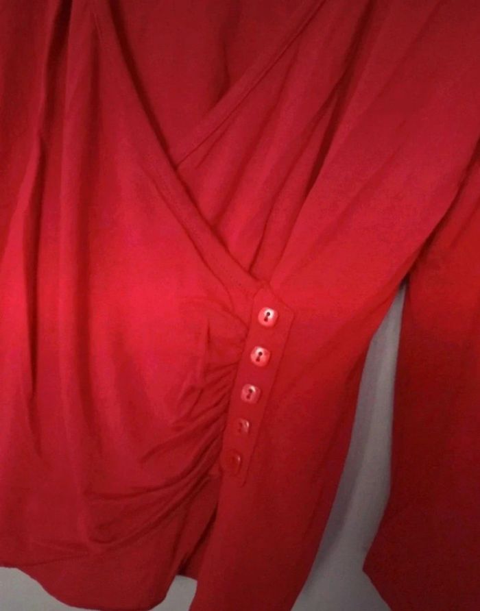 -shirt manches longues 3/4 Faux effet superposé t-shirt+gilet Boutons décoratifs côté Viscose elasthanne Rouge (plus foncé en vrai que sur les photos !) #sev40000femme38