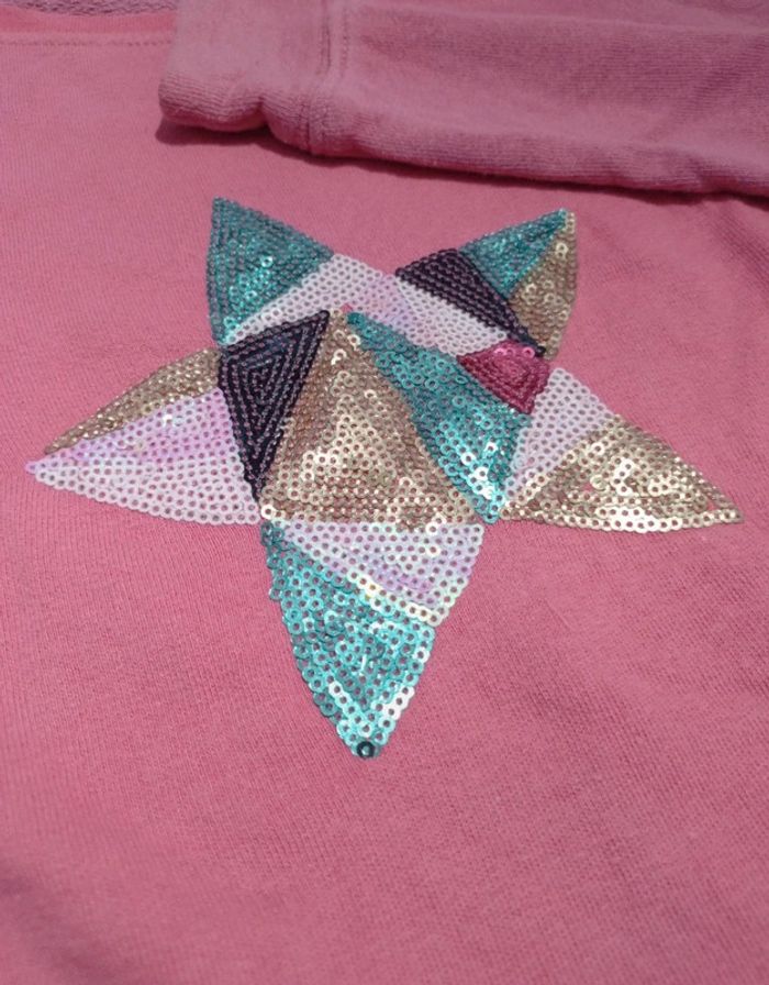 Sweat rose étoile sequins 9/10 ans - photo numéro 3