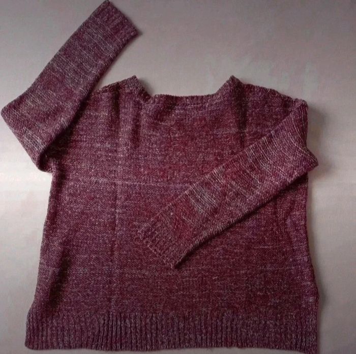 Pull Bordeaux et blanc Torsades sur le devant Plus long derrière que devant Étiquette taille XS (se porte loose) 34/36 #sev40000femme34 #sev40000femme36