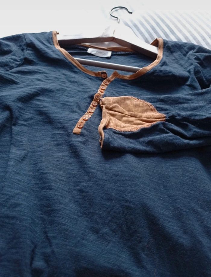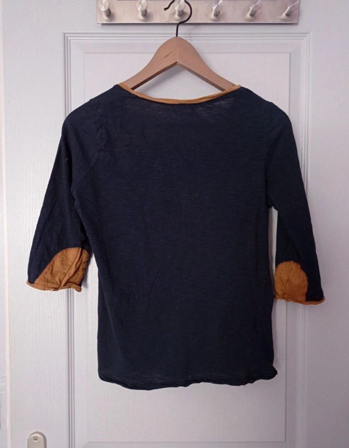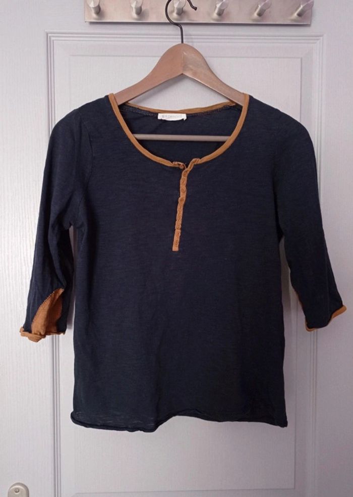 T-shirt bicolore marine et moutarde Manches mi longues 100 % coton Taille 38 #sev40000femme38