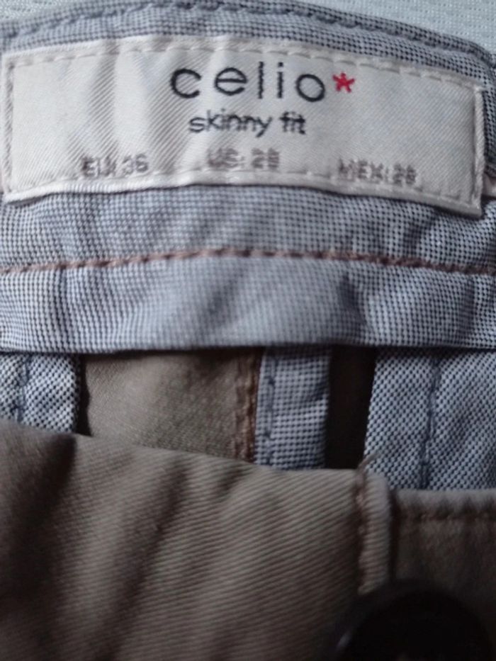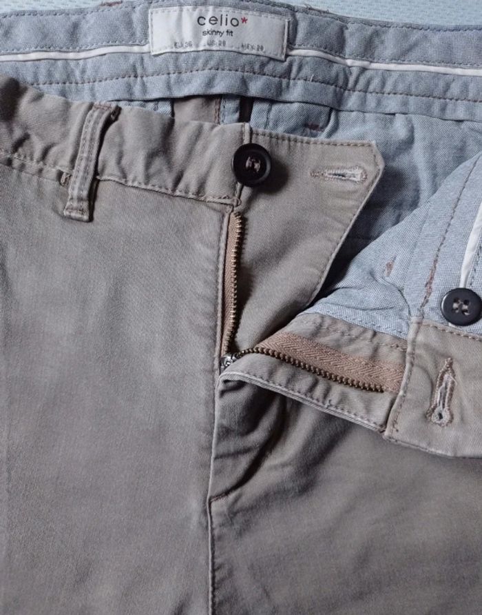 Chino skinny fit 4 poches Fermeture éclair et bouton Longueur depuis l'entrejambe 77 cm Largeur taille à plat 36 cm Étiquette taille 36