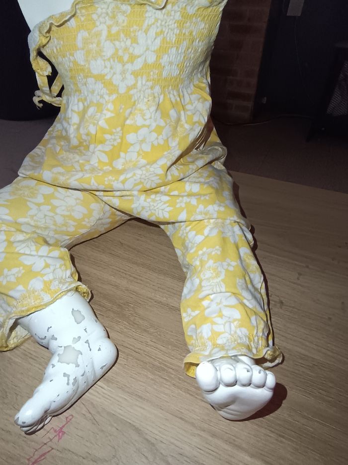 Combinaison jaune Fleurs blanche Fines bretelles Taille élastique 9 mois 100% coton #jaune #blanc #fleurs #combinaison #finebretelles #9mois #marylene025fille9mois