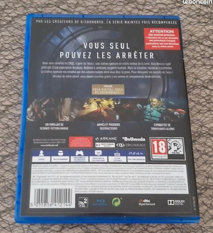 Jeu PS4 Prey Le jeu est en très bon état (aucune rayure, jouer 10 minutes mais il n'a pas plu) PRIX DE VENTE DE 12 EUROS FERME