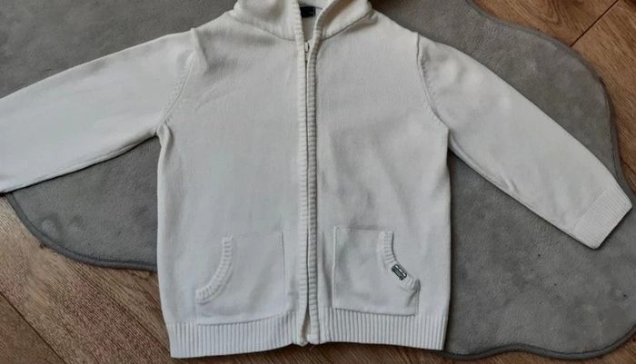 Gilet à capuche kiabi 24 mois Blanc motif petite voiture au niveau de la poche en très bon état (bien blanc et sans tâche) Pour visualiser tous ce que je possède en 24 mois garçon : #ambre6269024mgarçon