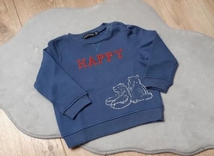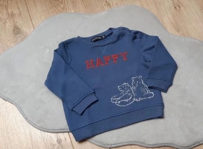 Pull bleu "happy" molletonné 12 mois (80cm) en très bon état - photo numéro 1