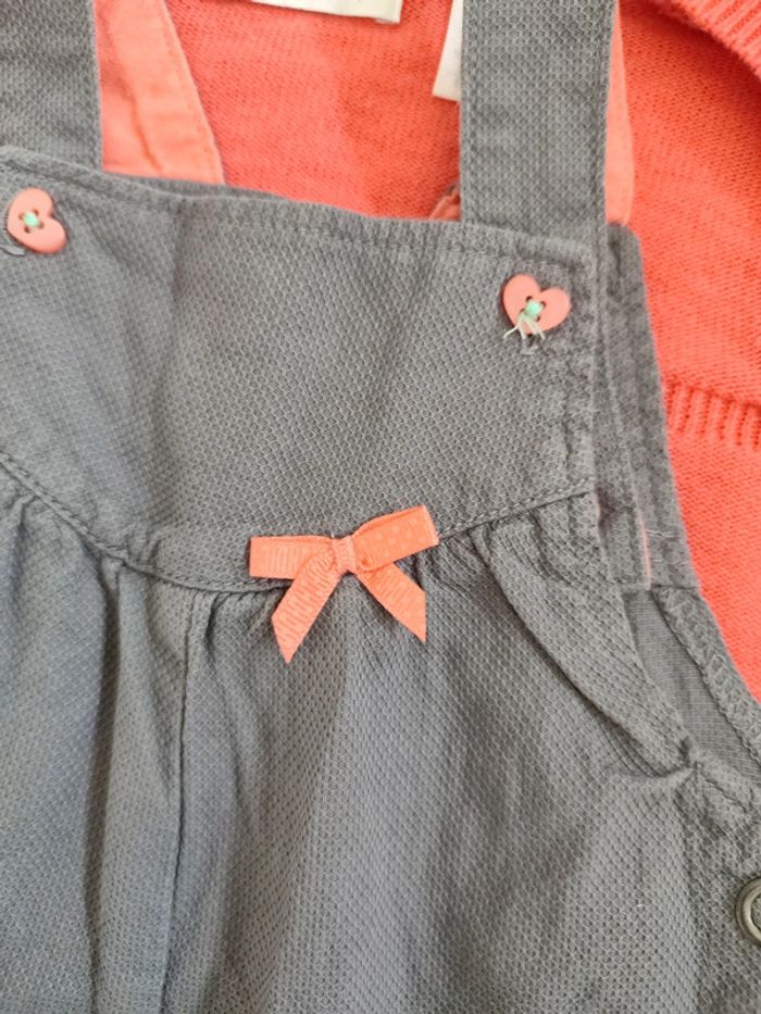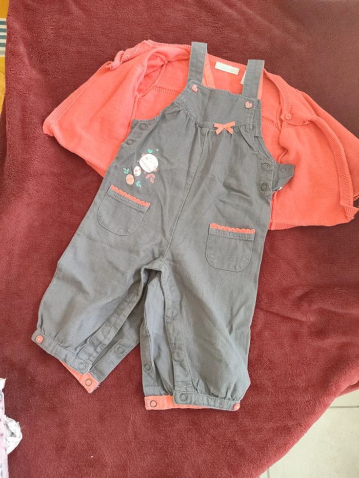 Ensemble 2 pièces. T 9 mois. Salopette (orchestra et gilet ( Obaidi). Gilet taille 6 mois (taille grand).