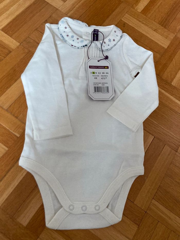 Ensemble sergent major en 6 mois composé : - d’un bodie neuf avec étiquette - deux hauts manches longues neufs avec étiquettes - d’une blouse en très bon état - d’un gilet en très bon état - d’un short en bon état couleur un peu moins vive mais pas abîmé - d’une paire de collants 15/16 neufs avec étiquette #alexanamar_sixmoisfille