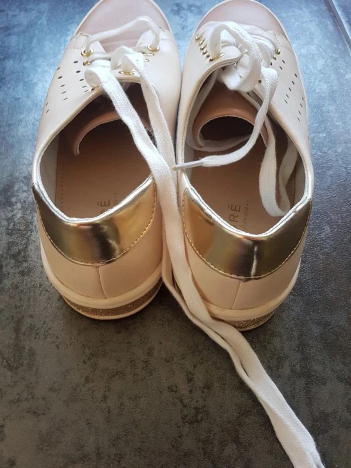 Baskets de couleur crème et rose Semelles dorées Comme neuves aucun défaut Portées 1 seule fois Pointure 39 #maggy80andre #maggy80chaussures39